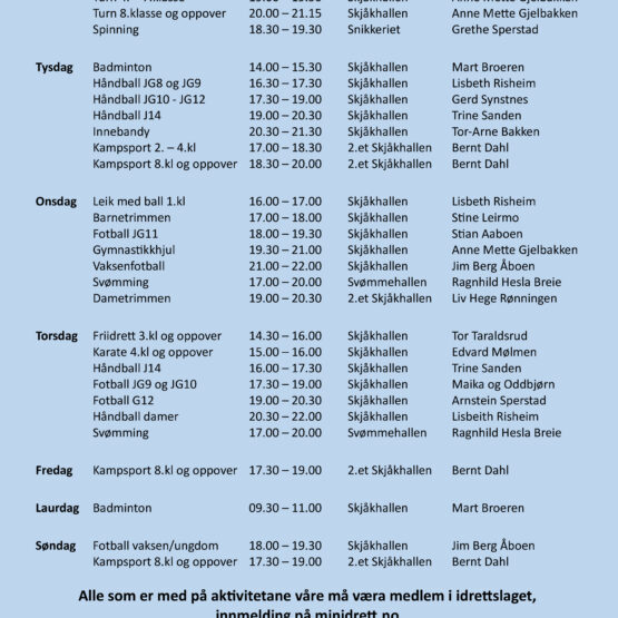 Følg med på facebook eller kontakt ansvarleg for aktiviteten for å få dato for oppstart.