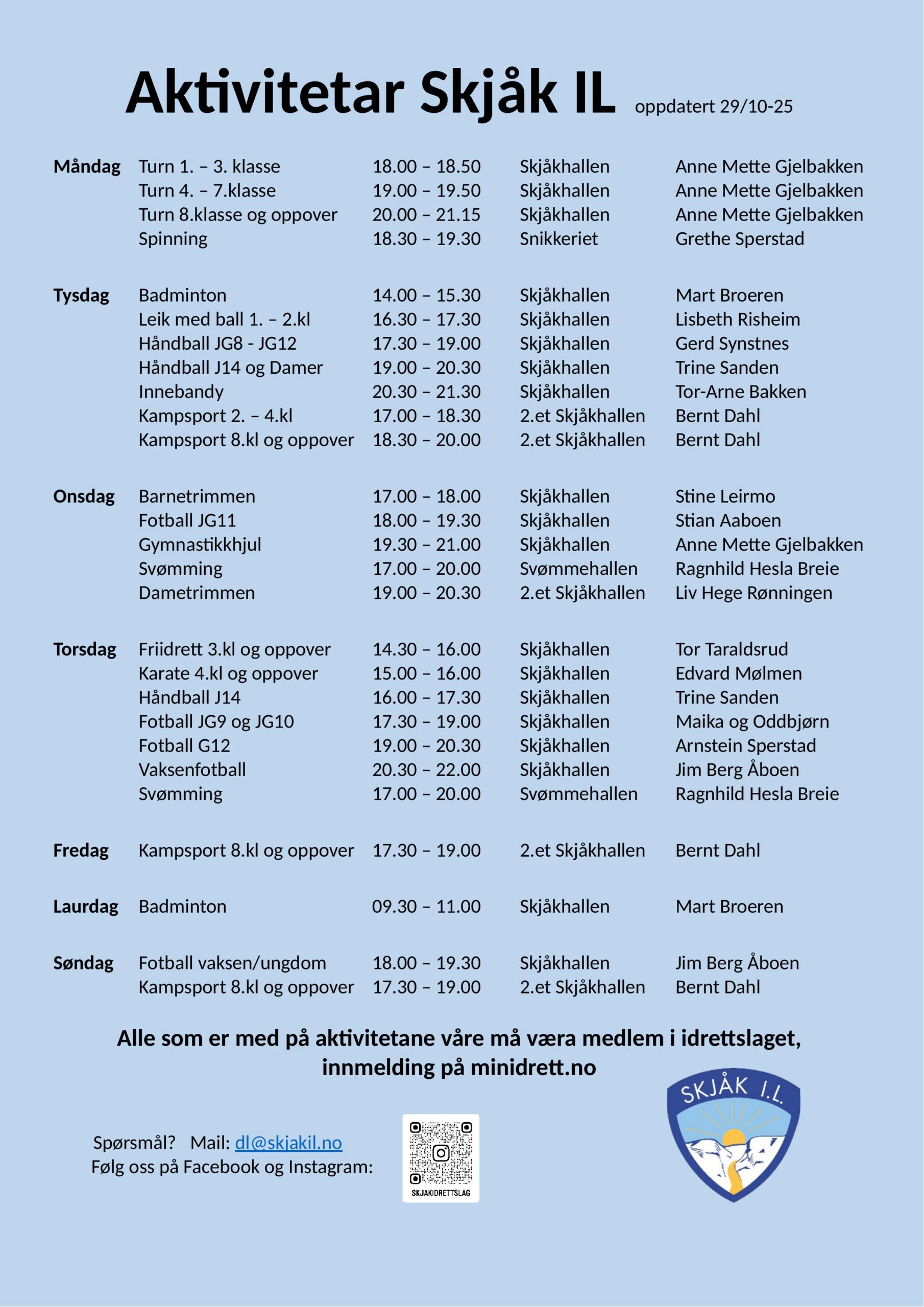 Velkommen til våre aktivitetar! Er du berre nysgjerrig, så ta gjerne turen for å sjå på ei trening fyrst 🙂