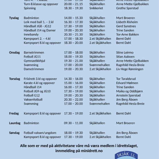 Følg med på facebook eller kontakt ansvarleg for aktiviteten for å få dato for oppstart.