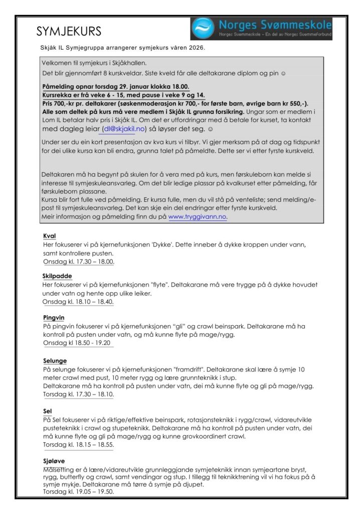 Svømmekurs våren 2026